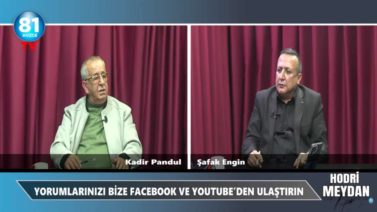 81 Düzce TV ekranlarında yayınlanan Hodri Meydan programının moderatörü Şafak Engin, bu haftaki bölümde hayırsever iş adamı Abdul Kadir Pandul’u konuk etti. Programda Pandul, hayırsever kimliği, bankasız ev modeli, yeni projeleri ve siyasi kulislerle ilgili açıklamalarda bulundu.